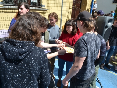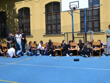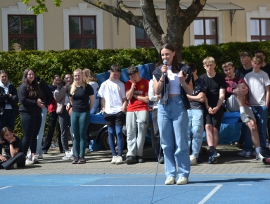 Pro mnohé z nás nadešel čas, kdy jsme se museli rozloučit s další generací maturantů tříd 4.A, 4.S a 8.E. Na řadu z nich jsme si zvykli, vždyť jsme se s nimi potkávali celá léta, diskutovali o četných tématech a zažili nemálo veselých chvil. Ale abychom na ně skutečně nezapomněli, tak si pro nás připravili v pátek 26. dubna 2024 pestrý program na dvoře školy. Zde se shromáždila celá škola a příjemně se bavila. Maturanti nám nabídli nejenom ochutnávku několika zábavných soutěží, ale i hry a kvízy z prostředí školy. Je skvělé, že se nám po letech podařilo vstoupit do období „Národního obrození na České“, neboť jsme se obešli bez nevhodné aplikace různých potravin a pokrmů (mouka, vejce, ocet, šlehačka, dorty) či vody aj.