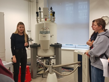 Odpoledne jsme se přesunuli do ÚOCHB, kde jsme se v rámci komentovaných exkurzí seznámili s aktuálním výzkumem v oblasti organické chemie, biochemie a vývoje léčiv. Nahlédli jsme do moderně vybavených laboratoří, kde se používají pokročilé analytické metody jako NMR spektroskopie, viděli v akci termity, DNA ve virtuální realitě i to, jak vědci v ÚOCHB pracují na vývoji nových molekul proti krvelačným parazitům.