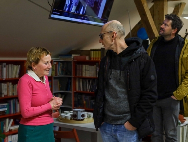 Zbývá nám ještě prostor „pod střechou“. Kdo byl utrmácen, spočinul zde v přístavu naplněném klidem, kreativitou a uměním. Hosté mohli např. zhlédnout vystoupení školního pěveckého sboru, obdivovat výstavu studentských výtvarných prací nebo se zaposlouchat do projekcí školního Divadla poezie. V podkrovní rovněž nechyběla ani prezentace jazyků prostřednictvím her a moderních technologií.