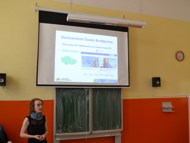 Workshop vedla dr. K. Marková z Eurocentra v ČB, která studentům představila možnosti, jak mohou vycestovat do zahraničí. Zaměřila se především na studijní, vzdělávací a dobrovolnické programy podporované EU.