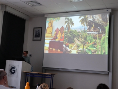 Poslední březnovou středu se u nás uskutečnila další z cestovatelských přednášek. Tentokrát nás Mia Loudínová ze 3.A vzala na dobrodružnou cestu po perle Indického oceánu – ostrově Srí Lanka. Během více než hodinového poutavého vyprávění nás Mia provedla po přírodních i kulturních památkách asijského ostrova. Díky zajímavým informacím a osobním postřehům dokázala zaujmout všechny přítomné posluchače, kteří dorazili v tak velkém počtu, že zaplnili aulu do posledního místa.