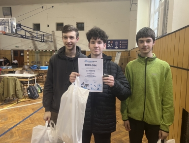 Ve středu 25. 3. před šestou ráno vyrazila výprava ve složení Matěj Kmínek, David Král a Tomáš Kučera pod dohledem zkušeného učitele a motivátora, veleváženého pana Miroslava Kotlase na krásnou tříhodinovou cestu do Týniště nad Orlicí, kde se spolu se 42 týmy z celé ČR i zahraničí zúčastnili soutěže Robotrack pořádané Tékáčkem. Cílem bylo sestavit a naprogramovat autonomního robota, který následně měl odjet „orientační běh.“