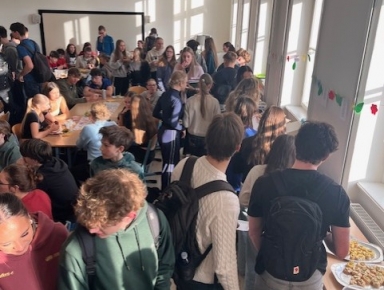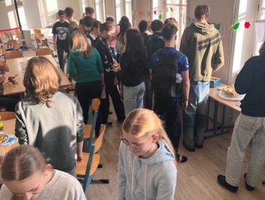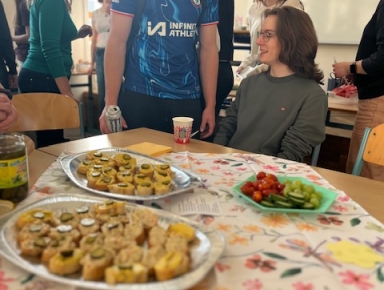 Venku to sice zatím ještě moc jarně nevypadá, ale my už jsme si příjemnou náladu navodili. Studenti 3. A a 3. E pro nás 27. 3. připravili další příjemnou Snídani na České, tentokrát v jarním duchu. Aula naší školy rozkvetla barevnými papírovými květy a tradičními vystřihovánkami, stoly ozdobily květované ubrusy a básně s jarními motivy od významných českých básníků, např. F. Šrámka, J. Vrchlického, J. Ortena či V. Hraběte. Poezii skutečnou doprovodila i poezie chutí – pro studenty i učitele byly připraveny sladké i slané dobroty, piškotový beránek, koláče, bábovky, toasty, bagetky s pomazánkami, čaj, kávička a pro ty, kteří už hubnou do plavek, třeba jogurty.