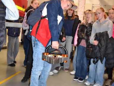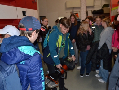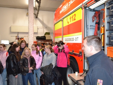 V druhé části jsme si pod vedením pprap. Miroslava Frída prohlédli vozový park a technické vybavení zásahových vozidel a seznámili se s průběhem výjezdu jednotky hasičů.