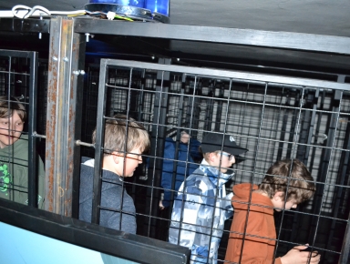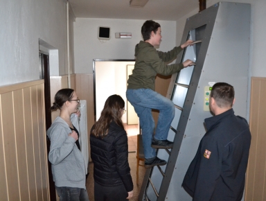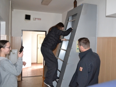Následně si žáci vyzkoušeli orientaci ve výcvikovém polygonu, kde byla simulována krizová situace v zatemněném prostoru. Procvičovali jsme pohyb v podmínkách snížené viditelnosti, orientaci v prostoru a postupy pro bezpečný únik.